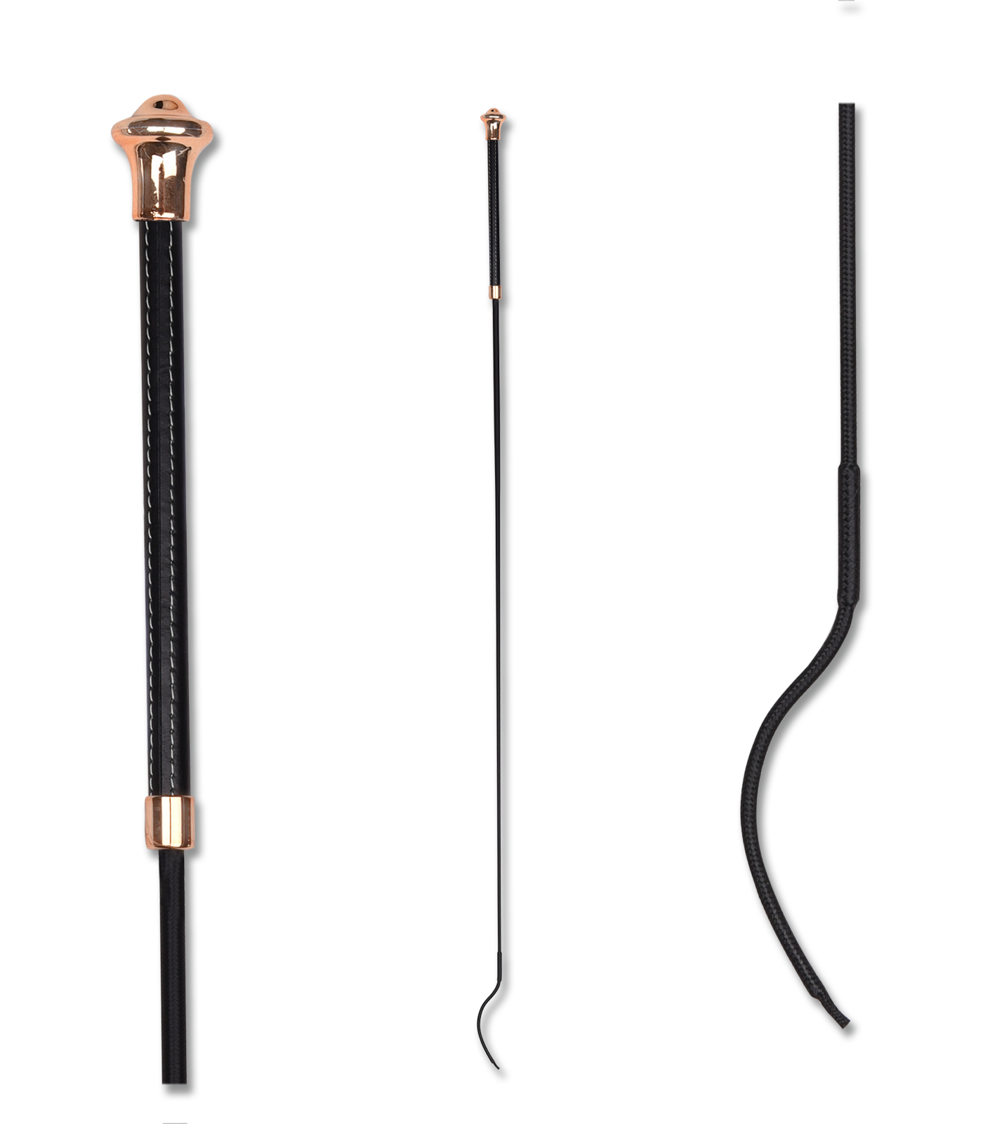 Elegant dressage whip with smooth real leather handle and Rose Gold aluminum end.